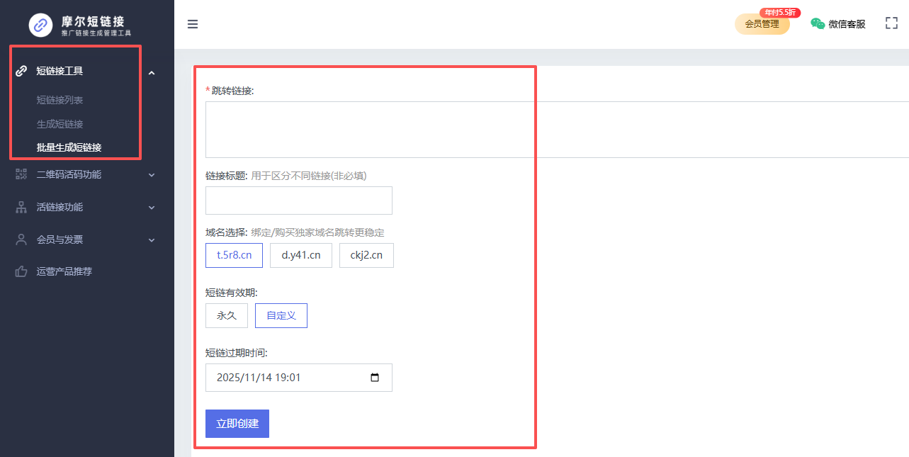 摩尔短链接作为一款专业的短链接生成工具,凭借其强大的功能和稳定的性能,已经成为众多企业和个人用户的首选。首先,摩尔短链接支持单个、批量以及API方式创建短链接,极大地方便了不同场景下的使用需求。无论是电商平台的促销链接、社交媒体上的广告投放,还是企业内部的信息分享,都能通过摩尔短链接快速生成简洁易记的短链接。