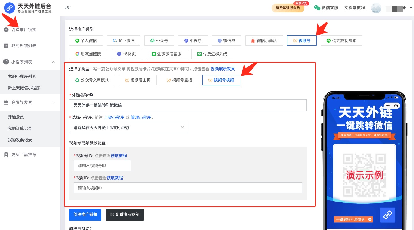 此外,天天外链还兼容多种主流平台,包括短信、邮件、知乎、百度、QQ、头条、抖音、微博、H5网页等,几乎覆盖了所有常用的APP和网站。这意味着,无论你的用户是在哪个平台上看到你的内容,都可以通过天天外链快速跳转到视频号主页,实现精准引流。