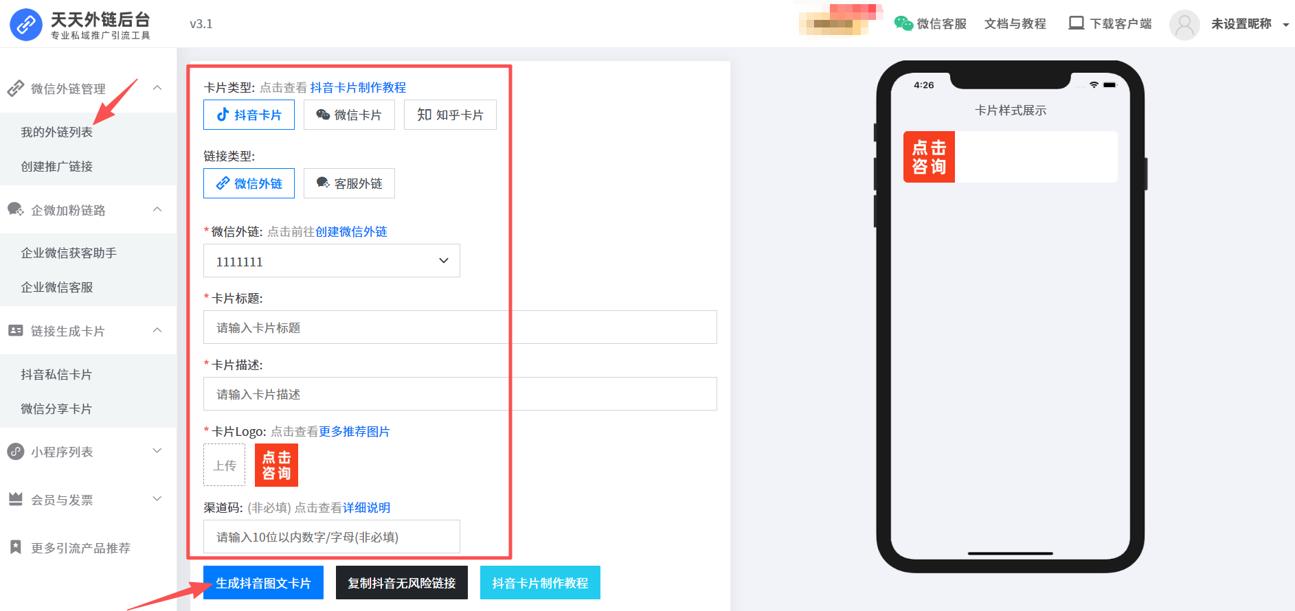 天天外链使用指南:打造高效抖音私信引流卡片跳转微信加好友