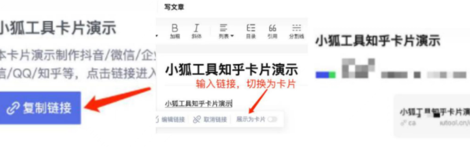 我们可以结合实用的卡片制作工具 https://moreqifu.com/product/xiaohu 来了解链接的创建与使用方式。如果想要在知乎分享内容并搭配卡片链接,首先要确定适配的视图形式。选择卡片视图的话,可进入对应工具平台完成账号登录,进入卡片制作界面后选用合适模板,编辑图片与文字信息,配置合规的跳转页面,生成链接后便可在知乎以卡片形式进行分享。